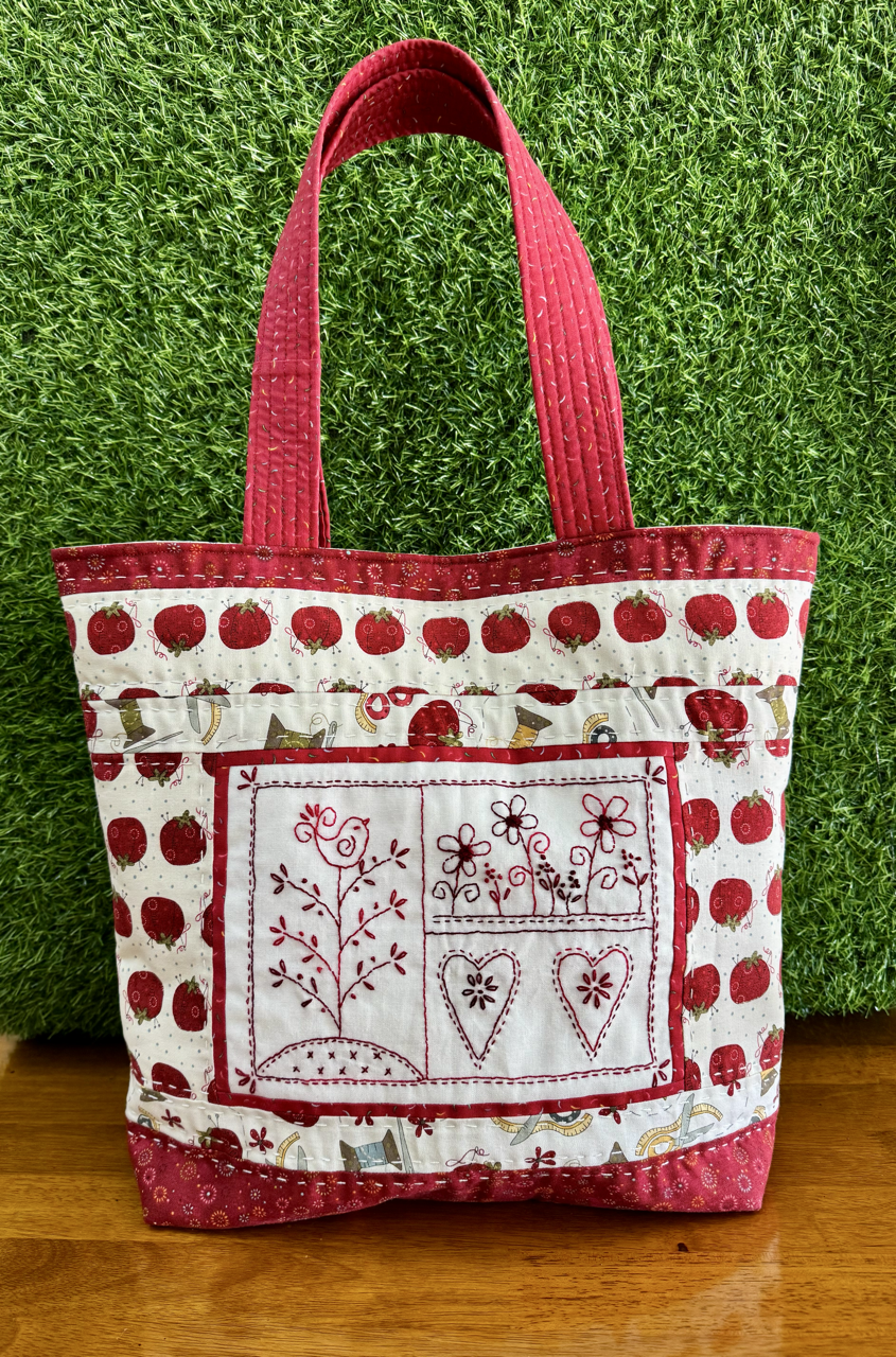 BOLSA DE MANO CON BORDADO DISEÑO JARDIN EN PATCHWORK