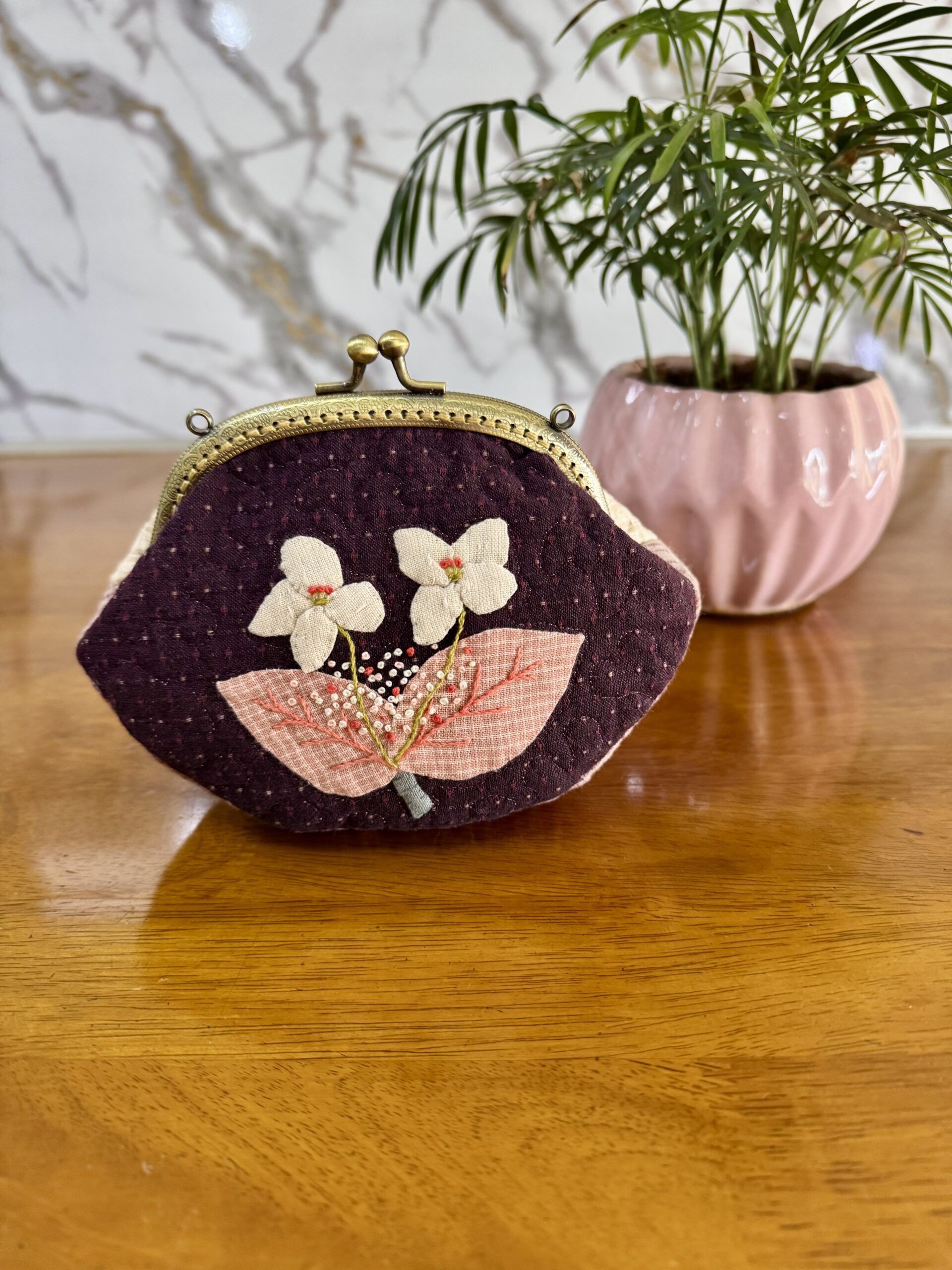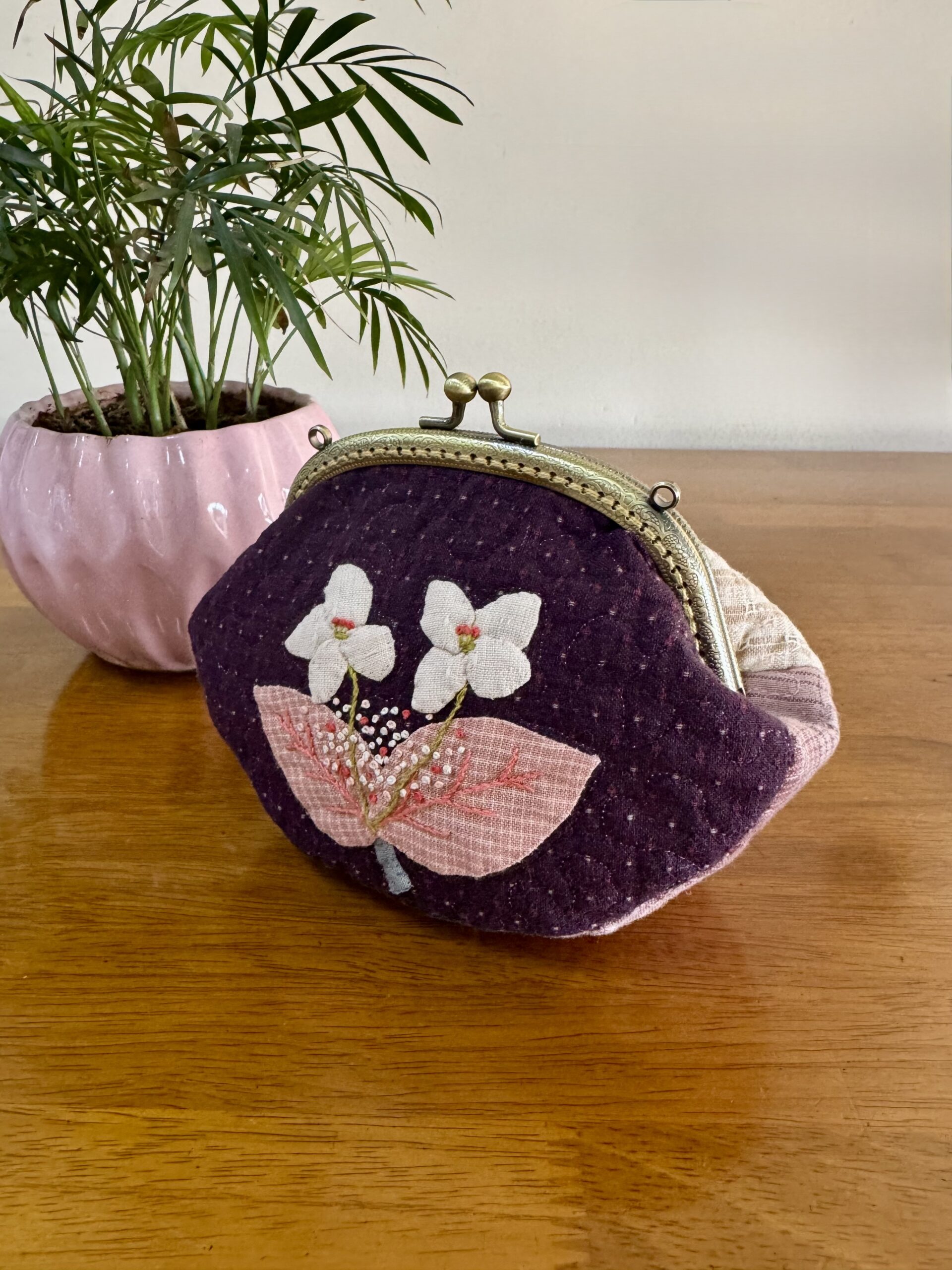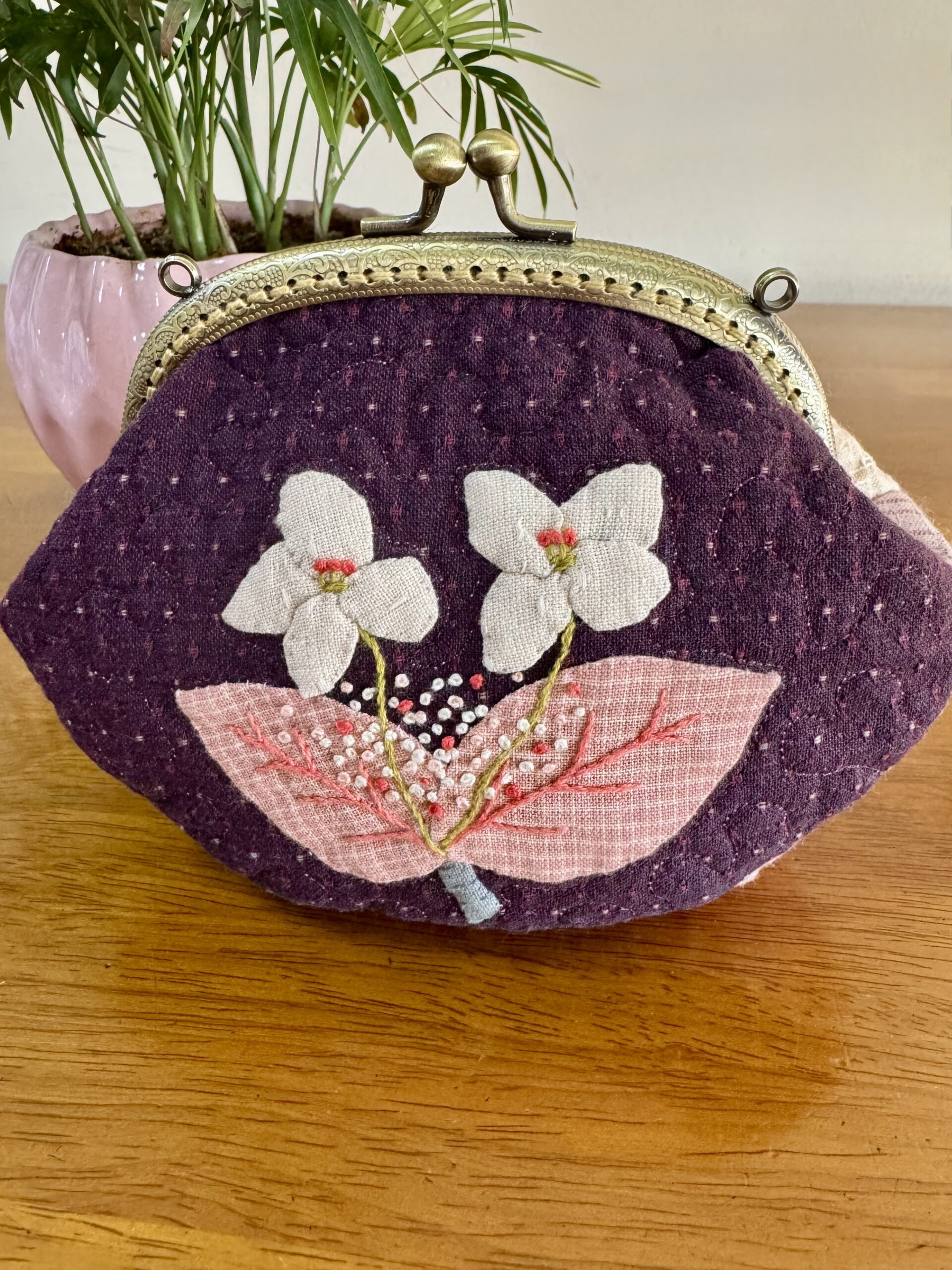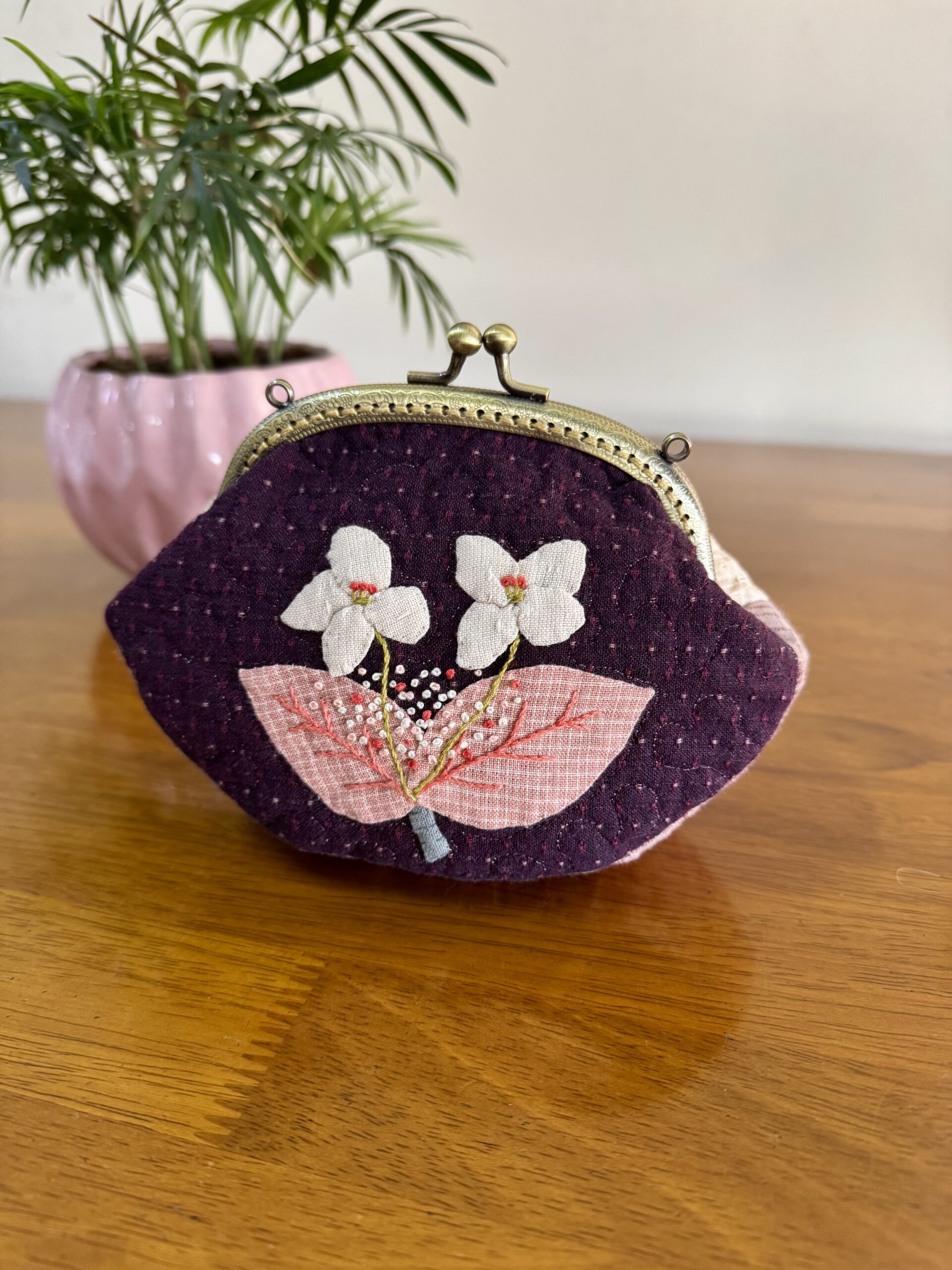 (+ Envío)MONEDERO DE TELA BORDADO DISEÑO FLORES EL CUAL ESTA REALIZADO CON TECNICA APLIQUÉ ESTILO JAPONES;