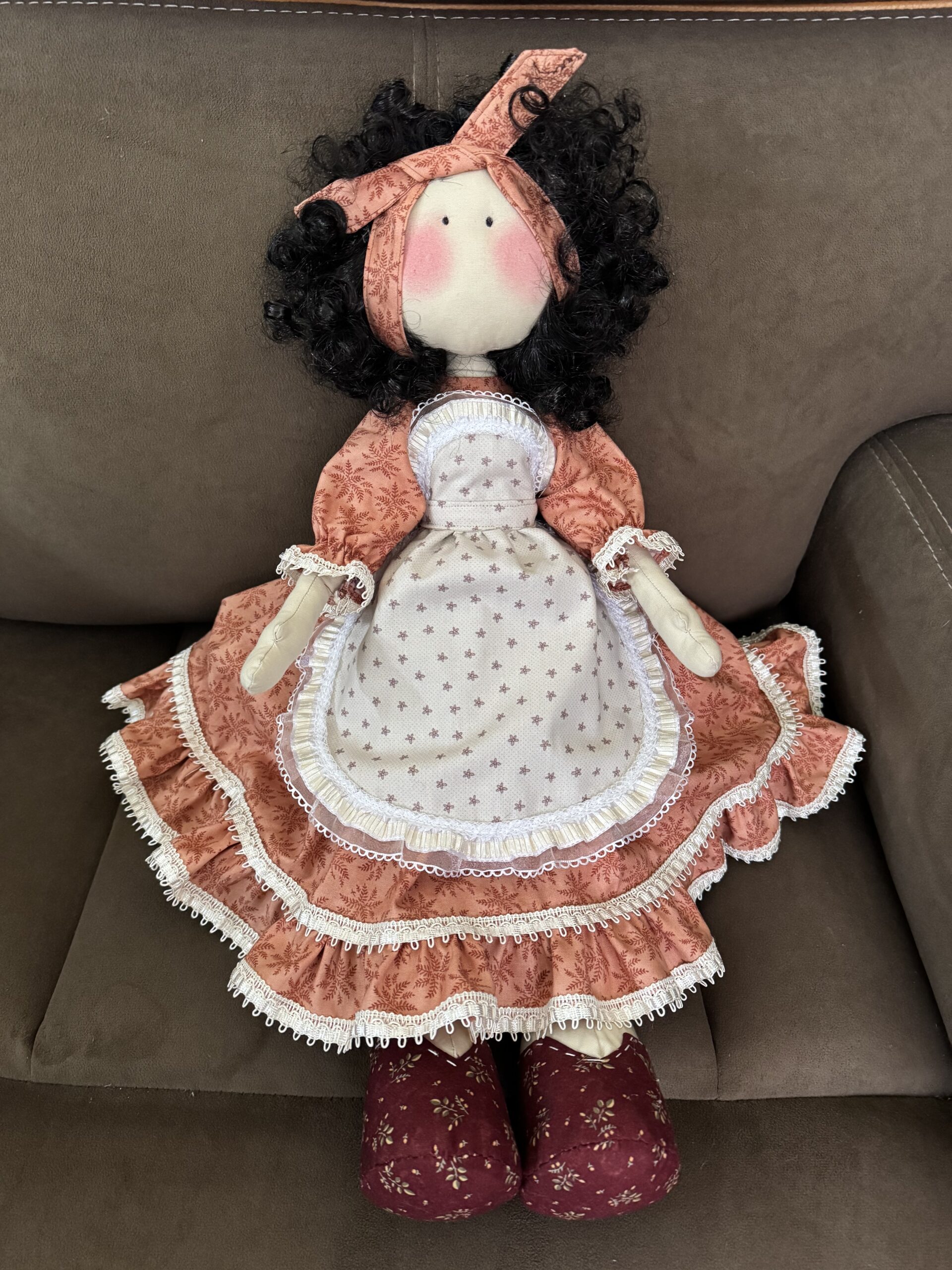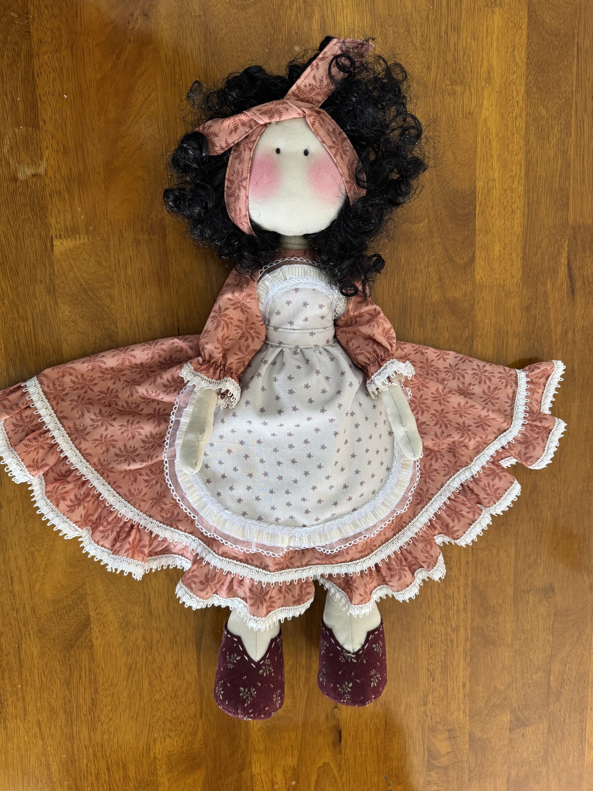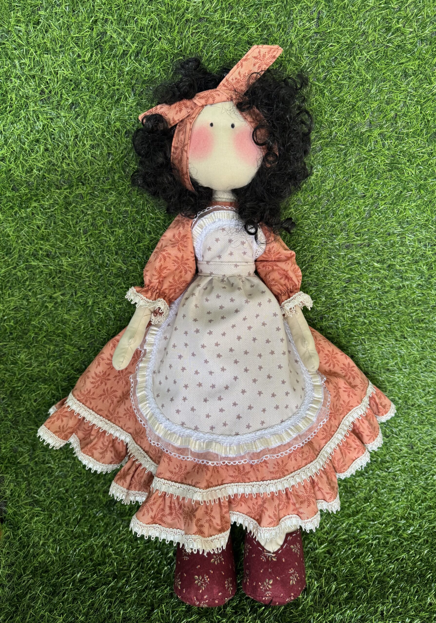 (+ Envío)«Irina» Muñeca de trapo realizada a mano, su vestido y accesorios realizados a detalle con materiales de mejor calidad, en tela Tilda de algodón, ideal para regalo y para coleccionistas. Unica pieza y original en todos sus detalles.
